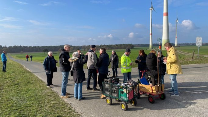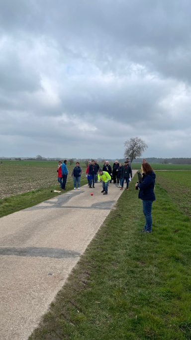 Das Wetter hat mitgespielt und so konnten die angemeldeten 60 Erwachsene und 17 Kinder eine tolle und unterhaltsame Zeit in Teilen unser Gemarkung verbringen. Unterwegs waren 3 Kontrollpunkte eingerichtet, an denen Aufgaben zu erledigen waren. Am Kontrollpunkt 2 mussten Ringe über Figuren geworfen werden (s. Foto).