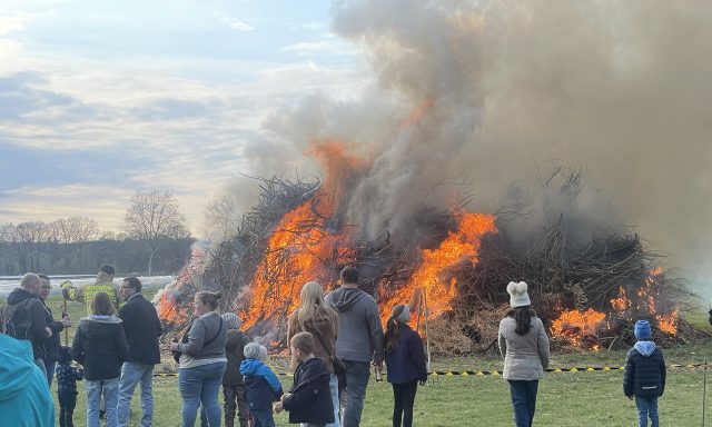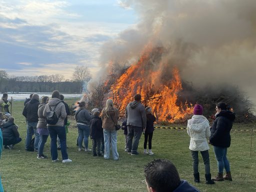 Auf unserem Bolzplatz wurde traditionell wieder das Osterfeuer gezündet. Bei gutem Wetter mit der richtigen Windrichtung ging es um 18 Uhr los. Bei Würstchen und Pommes sowie einer guten Auswahl an Getränken konnte geschaut, geschnackt und erlebt werden. Die Kinder saßen auf den Schaukeln, der Hängeschaukel oder spielten ein wenig Fussball. Rundum eine super Veranstaltung - bestens organisiert und einfach nur toll.